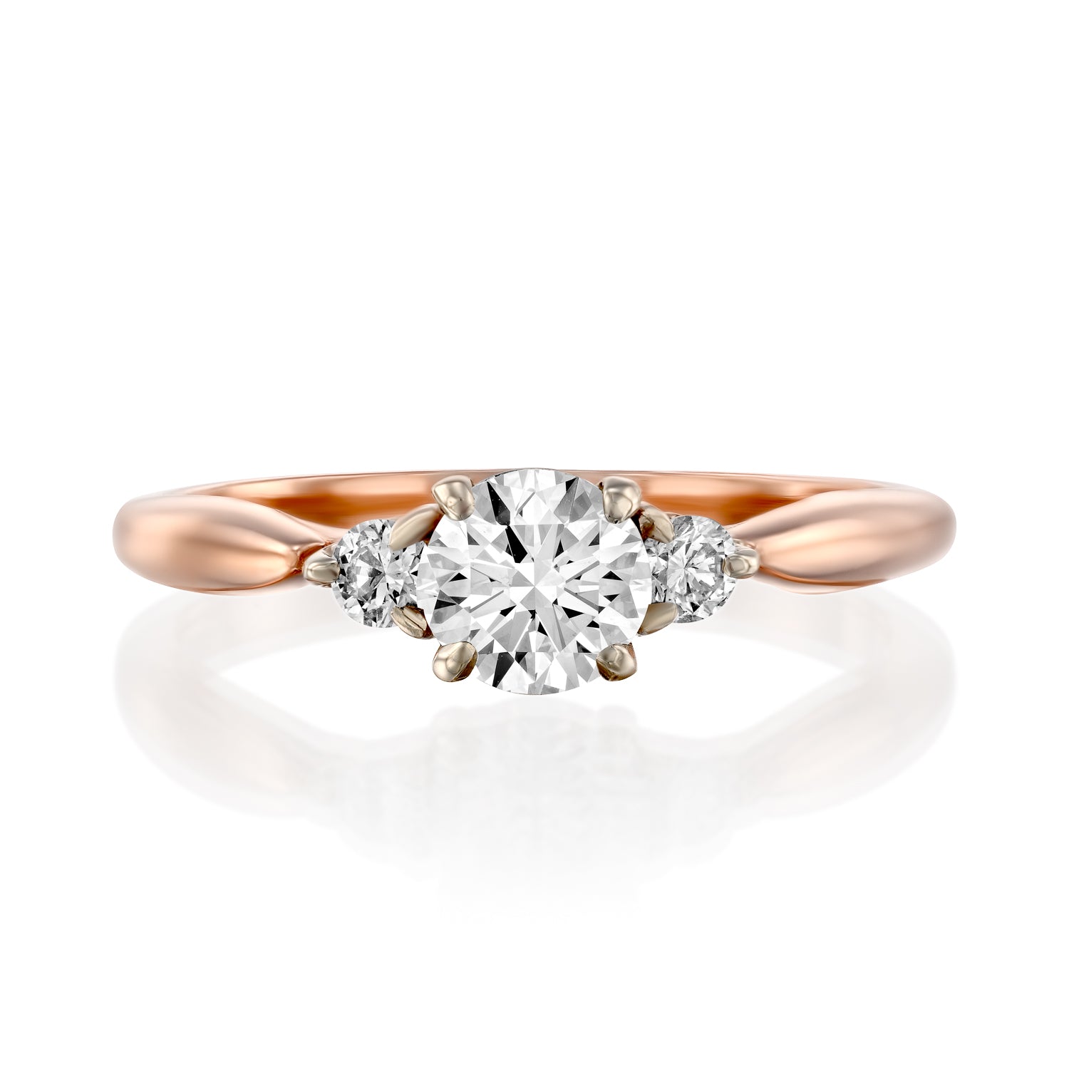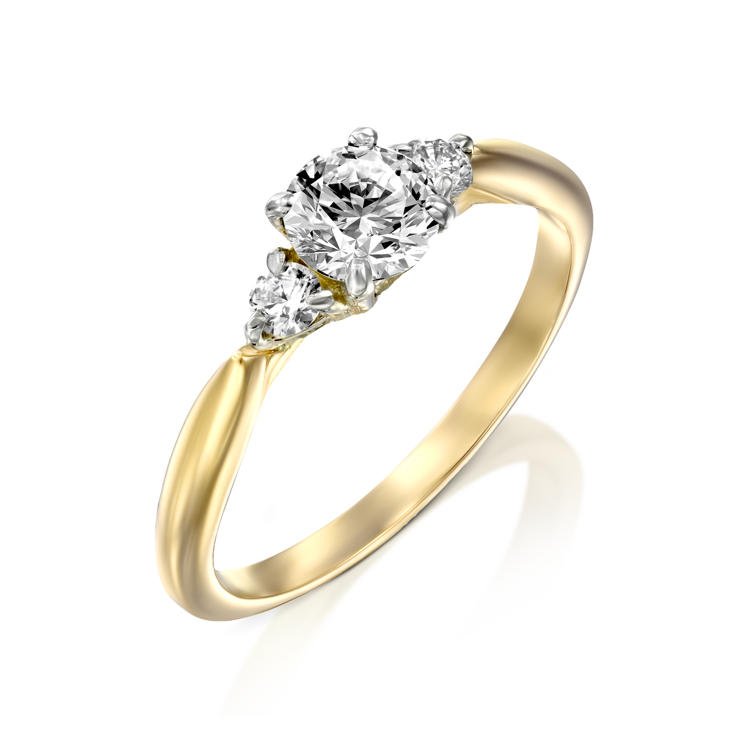 במרכז הטבעת משובץ יהלום מבריק, ולצידו יהלומים נוספים מנצנצים, כולם משובצים בתוך טבעת זהב 14 קראט מלוטשת. הניגוד בין ברק היהלומים לזהב החלק יוצר קומפוזיציה הרמונית ושובת לב. עבודת היד המדויקת ותשומת הלב לפרטים משקפות את מהות העיצוב של תקופת הארט דקו.